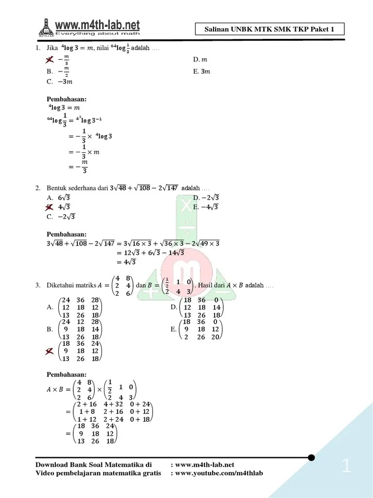 Seorang pedagang membeli lusin gelas 1 2 seharga rp 45.000,00 dan pedagang tersebut telah . Soal un unbk unkp matematika smk tahun 2019/2020. Soal unbk matematika smk 2020 pembahasan mengenai materi soal unbk. Paket soal latihan unbk yang merupakan paket soal latihan untuk melatih dan mengukur kemampuan siswa setelah mempelajari materi materi yang ada sekaligus . Download soal un smk 2018 bahasa indonesia, unbk matematika smk 2019 dan pembahasannya, download soal un bahasa inggris 2018 pdf,.